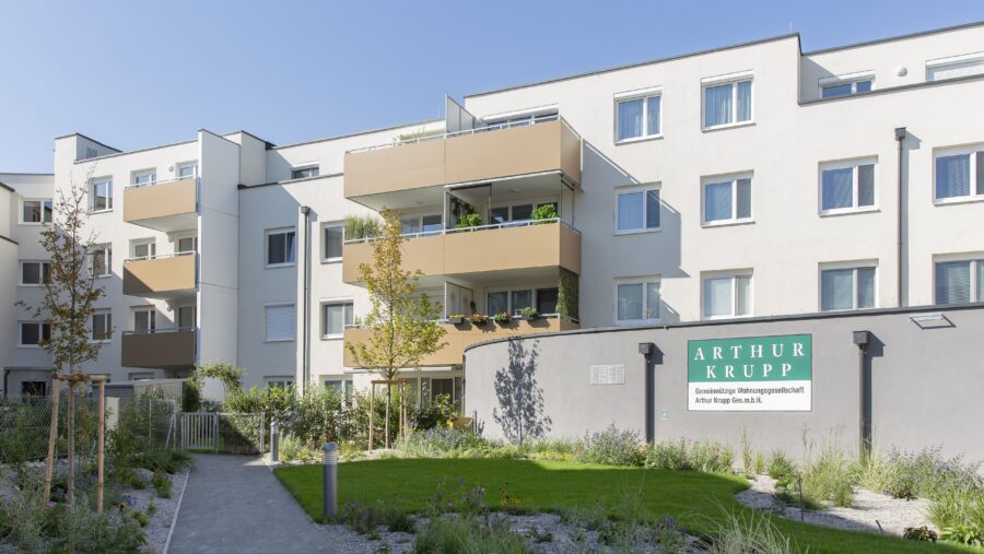 Im Zentrum von Neunkirchen hat die „Gewog Arthur Krupp“ den zweiten Bauteil einer modernen Wohnhausanlage errichtet, der neben 29 geförderten Mietwohnungen und 7 Eigentumswohnungen auch eine zweigeschoßige Tiefgarage umfasst. Bei den Stellplätzen wurden Vorbereitungen zur einfachen Nachrüstung von E-Ladestationen getroffen.