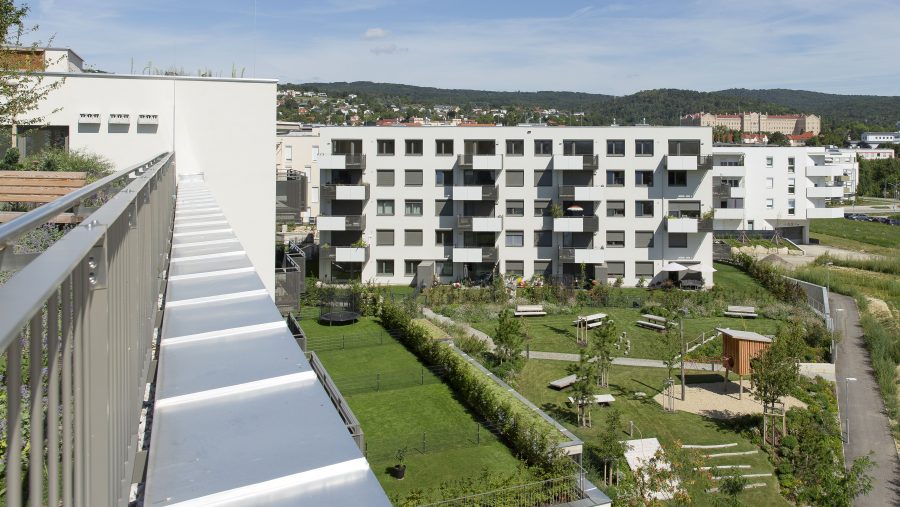 Die modernen 2- bis 4-Zimmer-Wohnungen verfügen über einen Balkon oder eine Loggia mit großen Pflanztrögen und sind bequem mit dem Aufzug zu erreichen. Geheizt wird mittels Fernwärme-Fußbodenheizung, eine moderne Photovoltaikanlage trägt zur (teilweisen) Abdeckung des Allgemeinstrombedarfs bei. Zusätzlichen Stauraum bieten die Einlagerungsabteile der Wohnungen im Untergeschoß.
