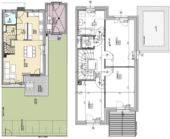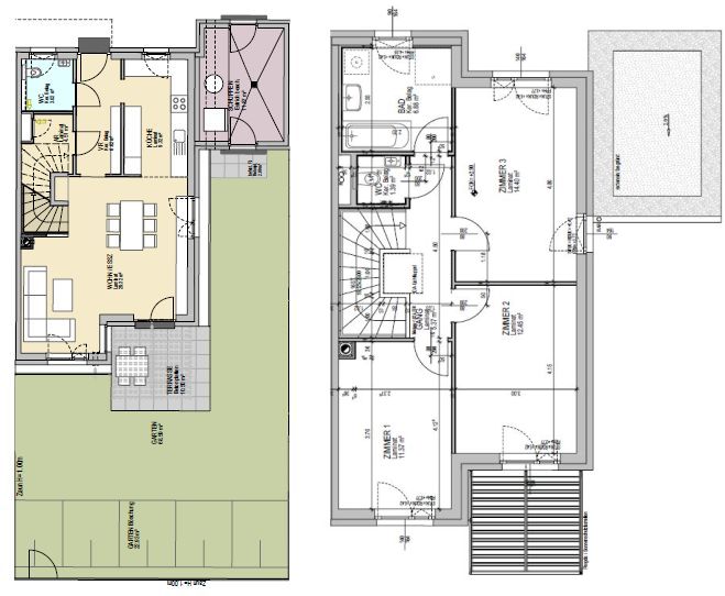 Top 3.4 – Erdgeschoß, Obergeschoß, Garten ca. 66 m² mit Terrasse ca. 11 m²