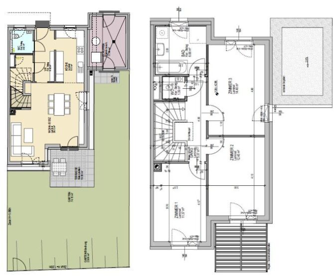 Top 1.2 – Erdgeschoß, Obergeschoß, Garten ca. 71 m² mit Terrasse ca. 11 m²