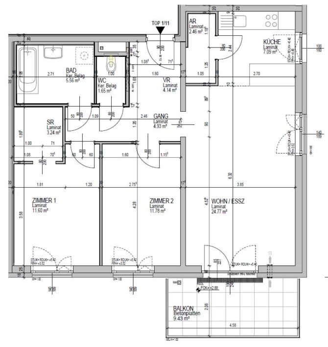 Top 11 – Obergeschoß, Balkon ca. 9 m²