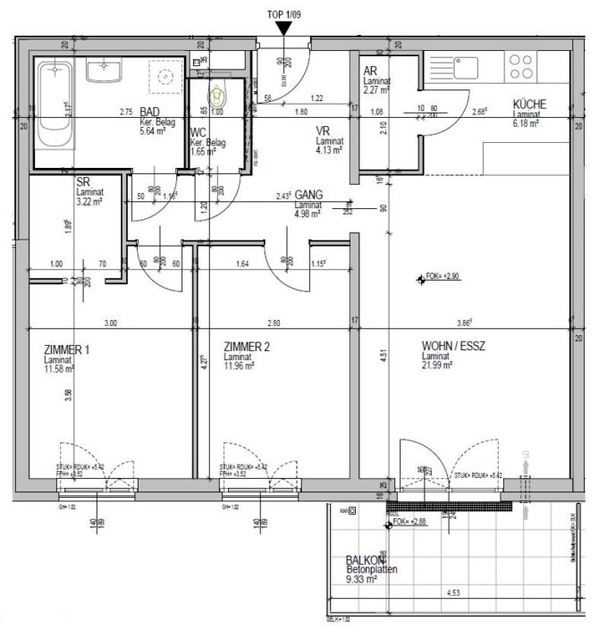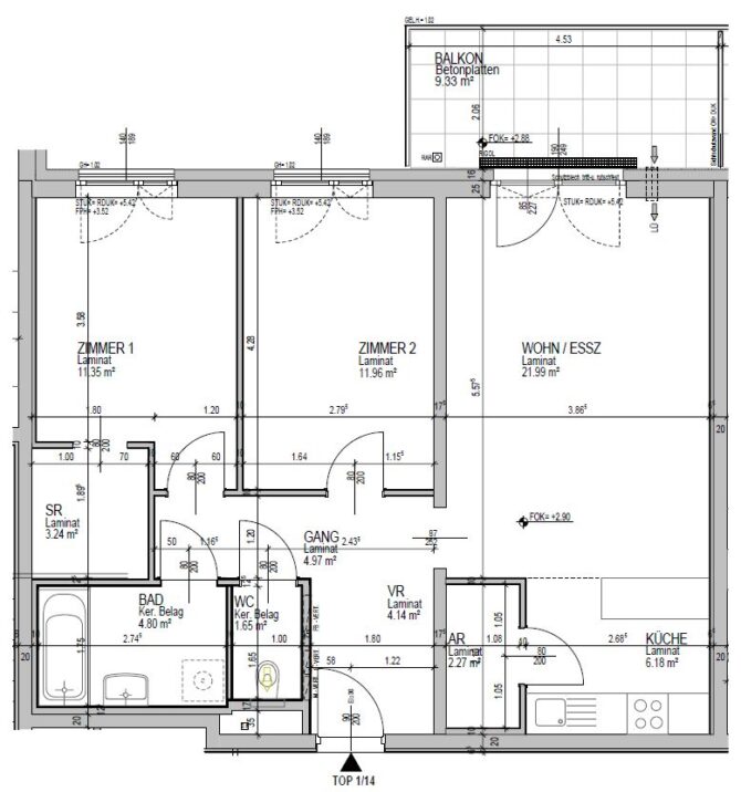 Top 14 – Obergeschoß, Balkon ca. 9 m²