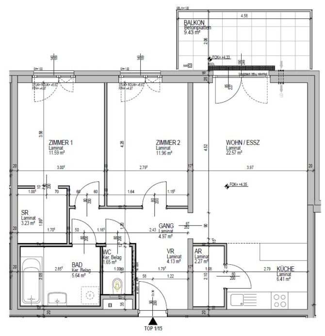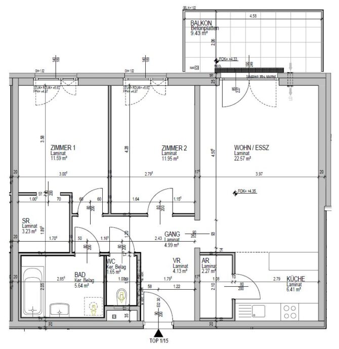 Top 15 – Obergeschoß, Balkon ca. 9 m²