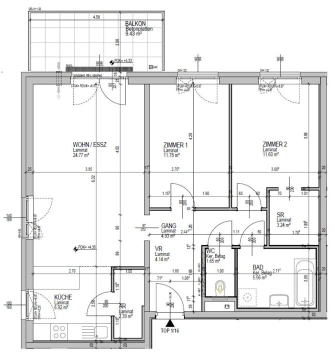 Top 16 – Obergeschoß, Balkon ca. 9 m²