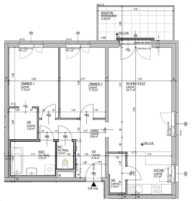 Top 12 – Obergeschoß, Balkon ca. 9 m²
