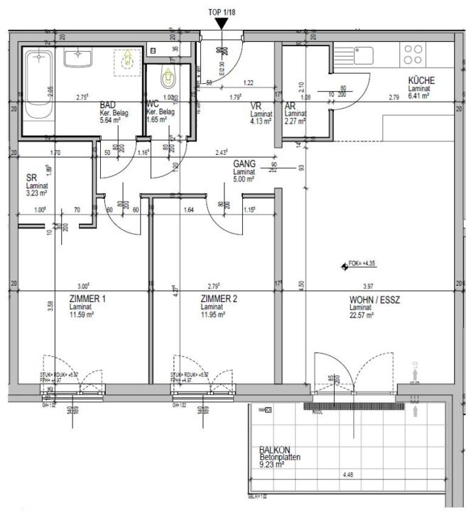 Top 18 – Obergeschoß, Balkon ca. 9 m²