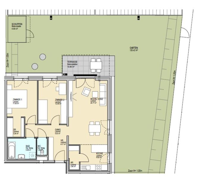 Top 4 – Erdgeschoß, Garten ca. 126 m² mit Terrasse ca. 10 m²